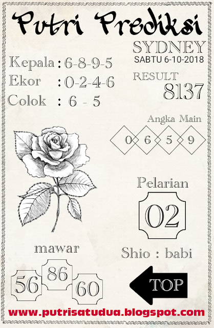KODE SYAIR SYDNEY SABTU 6 OKTOBER 2018 KODE SYAIR KALONG
